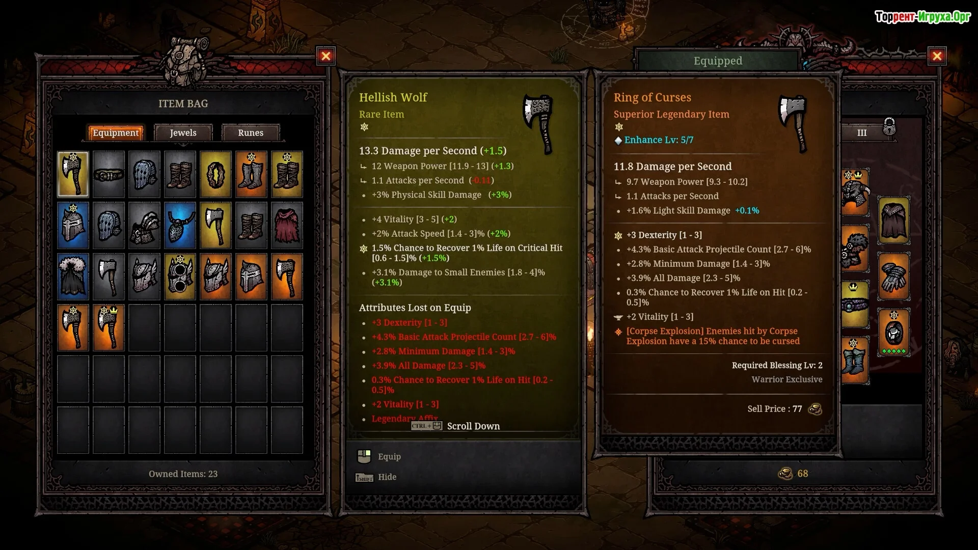 Большое количество предметов с уникальными и случайными характеристиками.