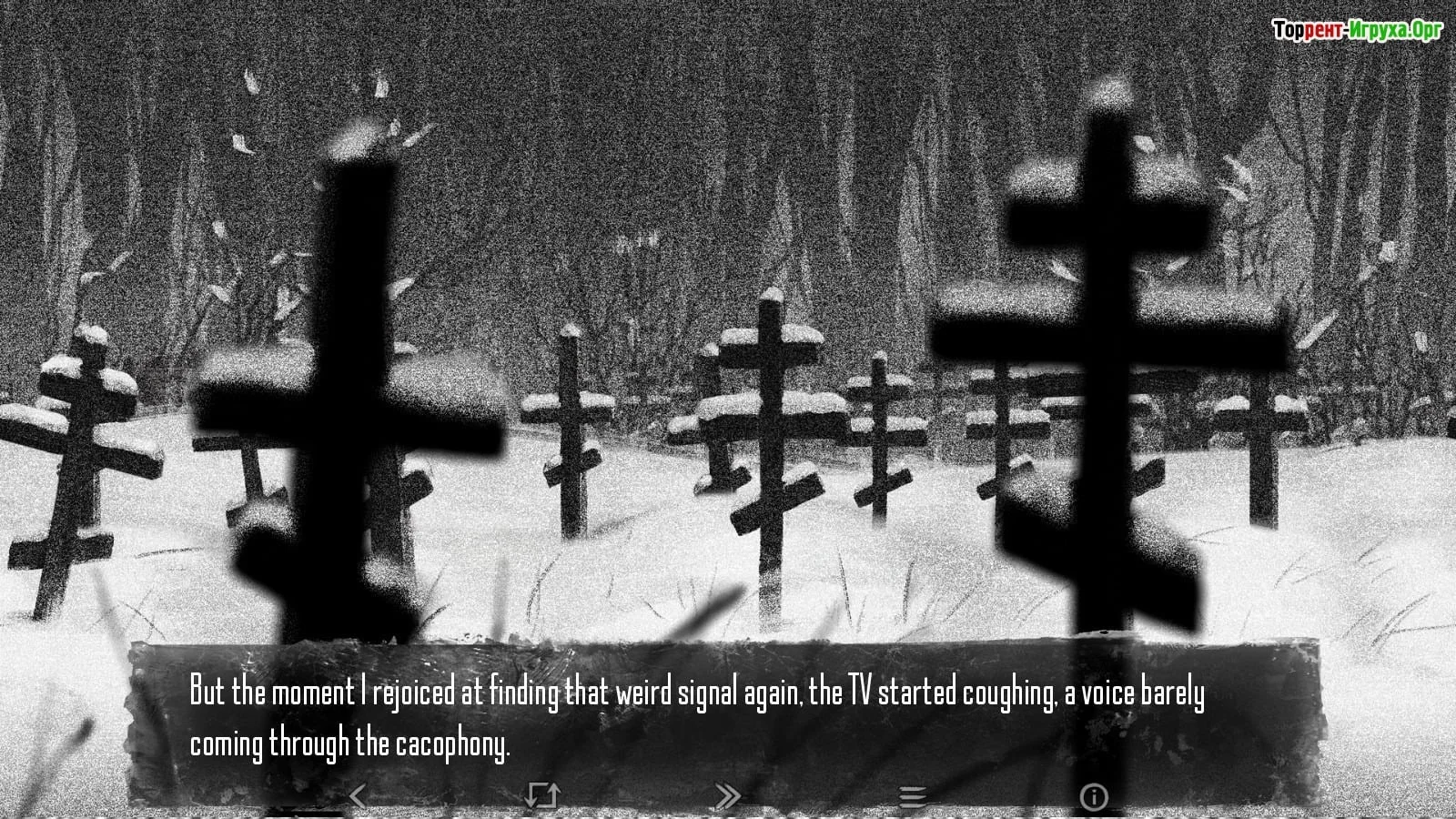 Визуальная подача чёрно-белая — резкая, выразительная, одновременно простая и тревожная. Саундтрек усиливает ощущение надвигающейся угрозы, временами превращаясь в полноценного «персонажа», который сопровождает игрока в самые тёмные моменты. Страх здесь возникает не только из-за странных следов или шёпотов в темноте, но и из-за леденящих душу сцен, когда чьи-то искажённые лица появляются в окнах. Контраст белого снега и чёрных деревьев скрывает тайны, о которых лучше бы не знать. А трансформация людей, происходящая у героя на глазах, заставляет тело покрываться мурашками.