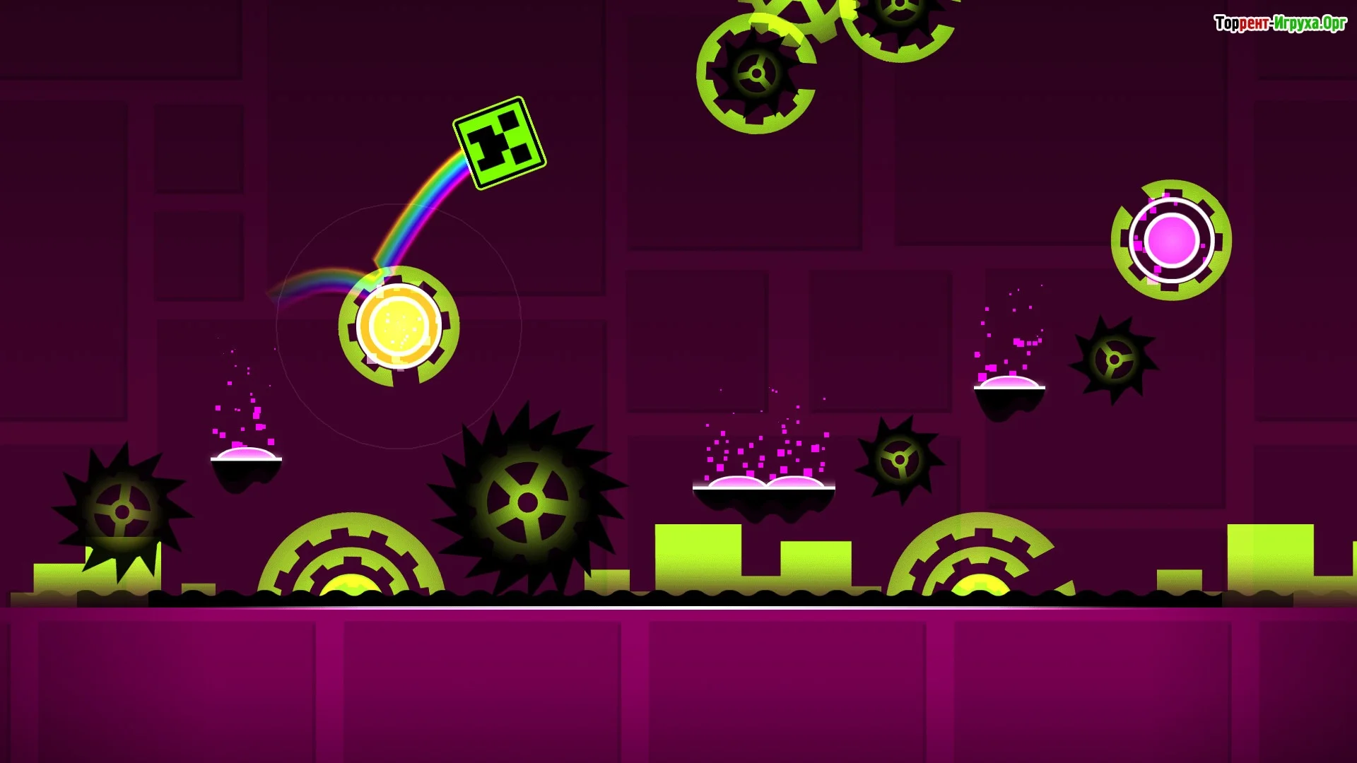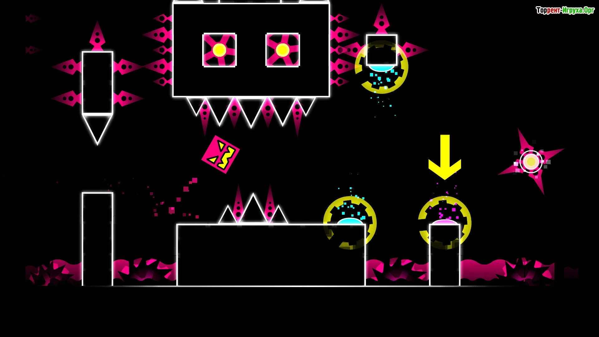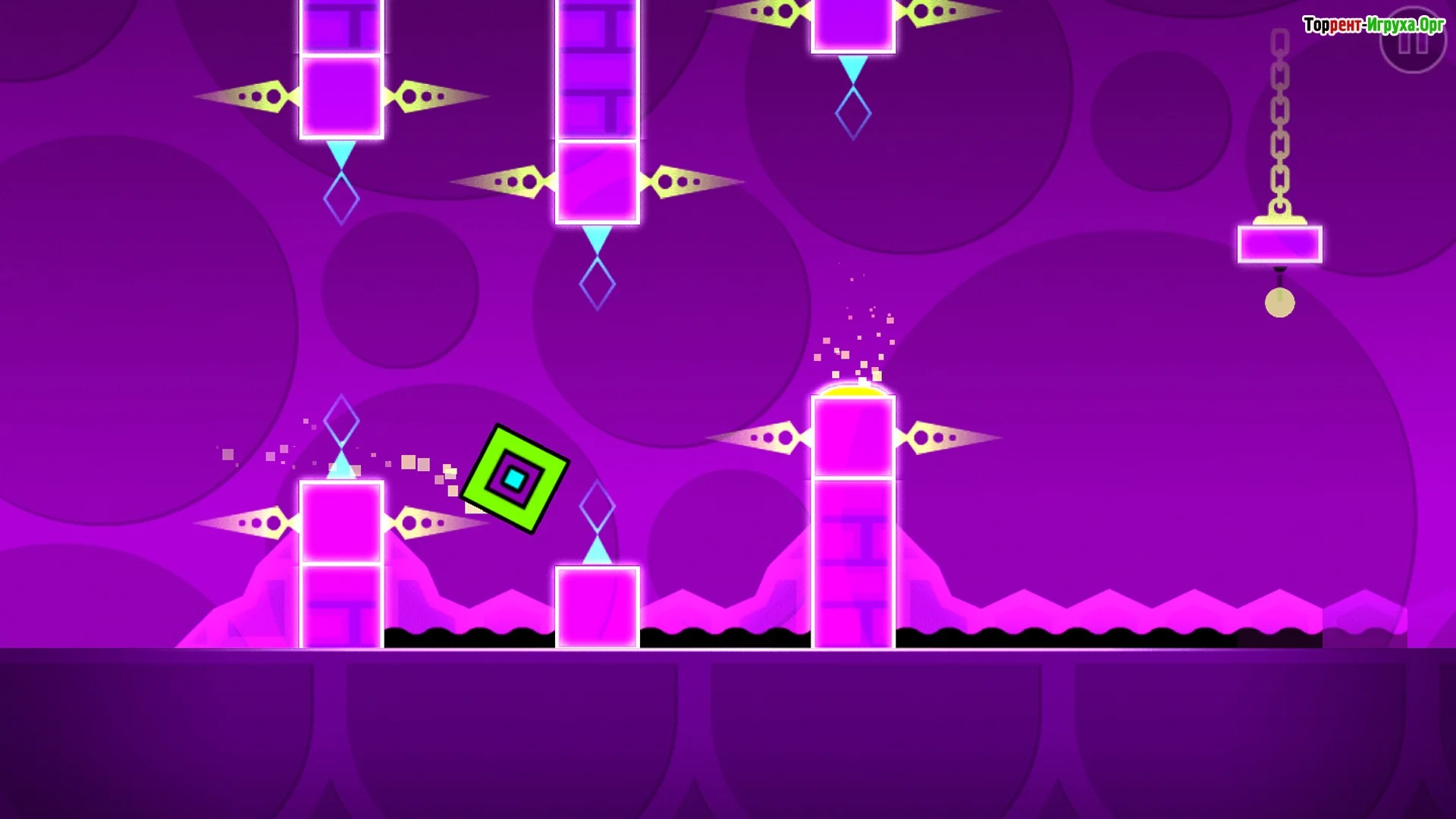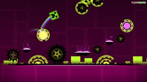Geometry Dash — это 2D-платформер, построенный на точности, реакции и чувстве ритма. Каждый уровень представляет собой динамичную полосу препятствий, полностью синхронизированную с электронной музыкой. Здесь нет сюжета и диалогов — только движение вперёд, музыка и идеальный тайминг.