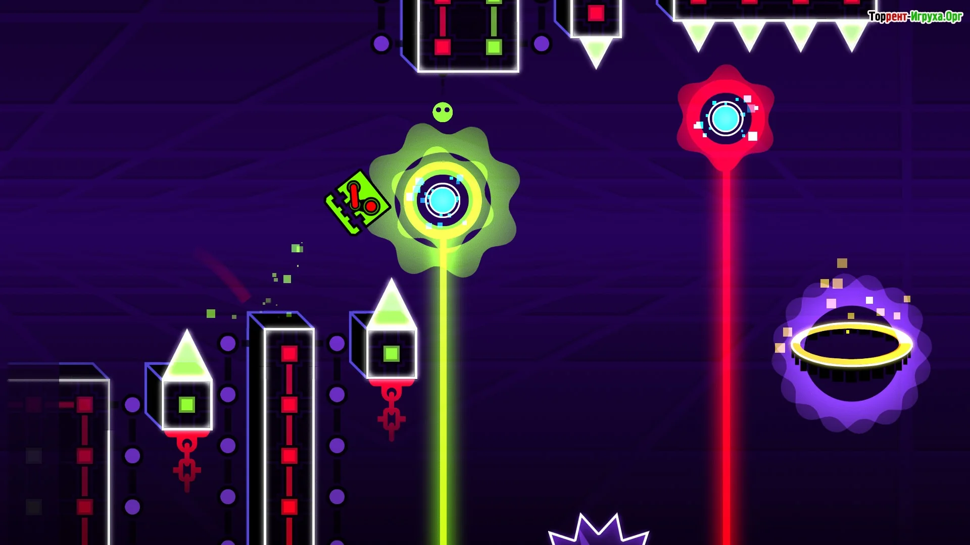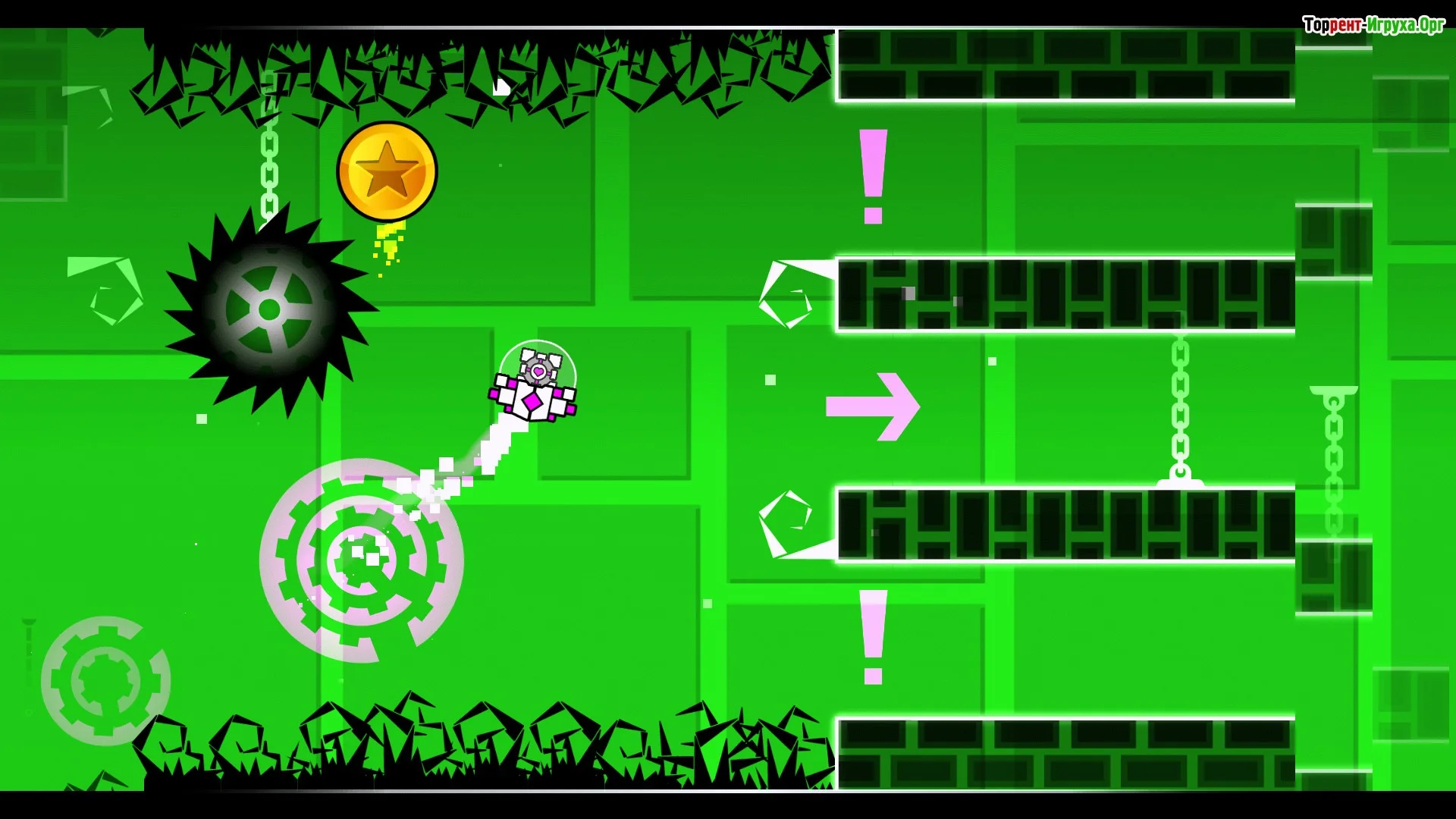 По ходу прохождения персонаж постоянно меняет форму: куб, шар, корабль, волна и другие режимы движения требуют разного подхода и тайминга. Специальные порталы переключают гравитацию, скорость и тип управления, заставляя быстро адаптироваться к новым условиям.