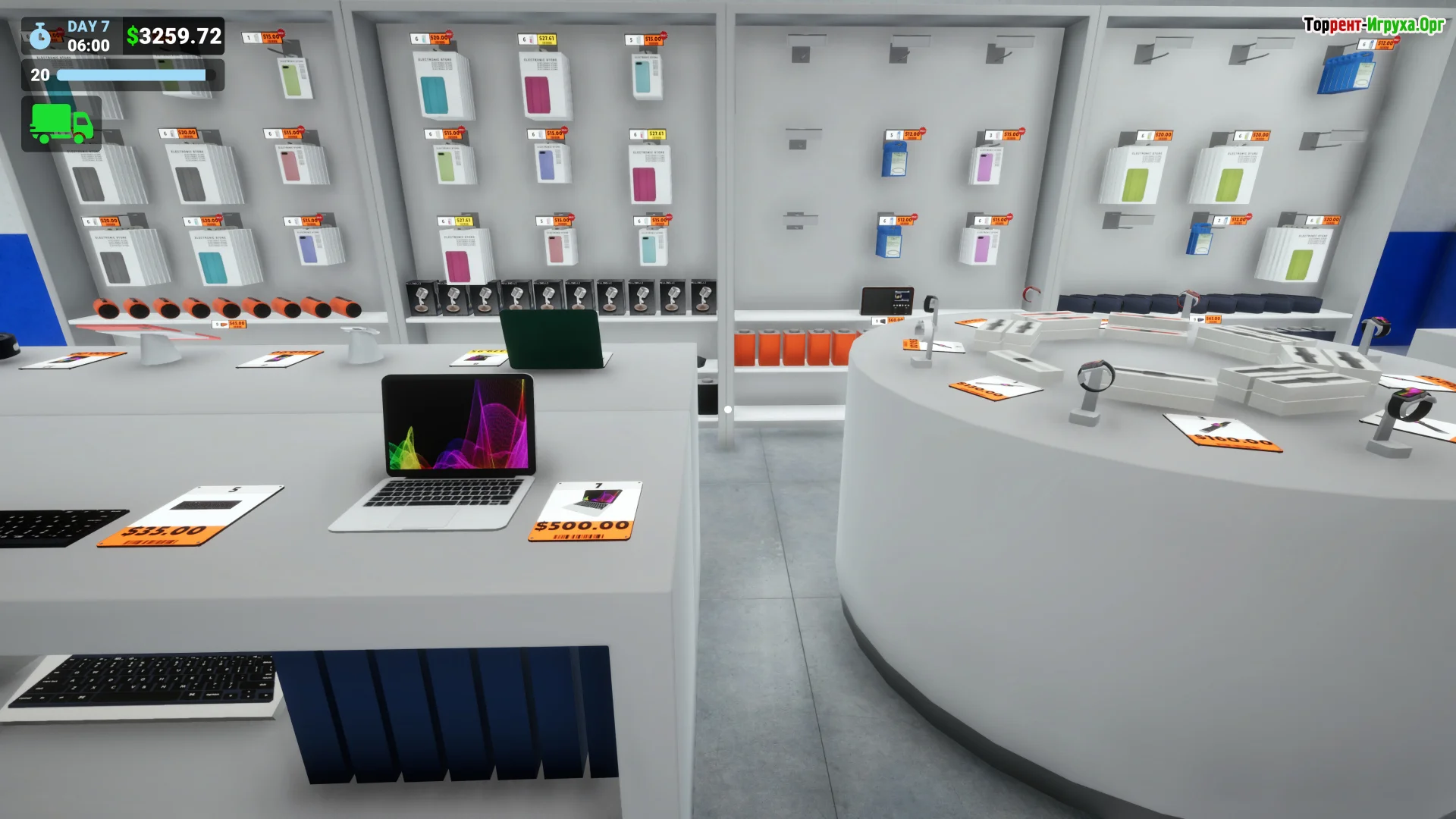 В основе игрового процесса лежит операционное управление. Товары прибывают на склад на грузовиках — их нужно разгрузить, разместить и вовремя выставить в торговом зале. Если не следить за остатками, полки быстро опустеют, а покупатели начнут уходить.