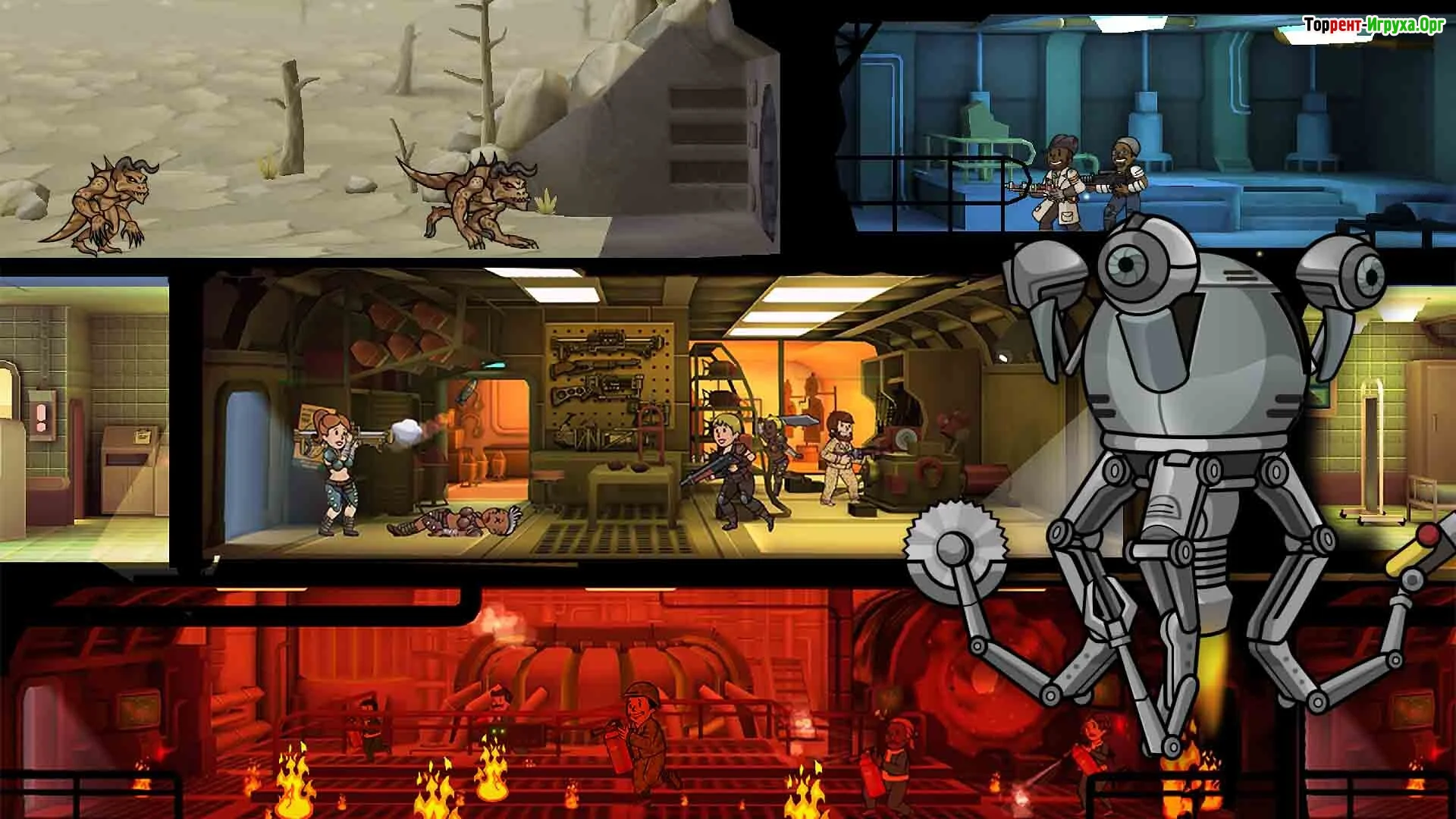 Fallout Shelter дает возможность каждому желающему выступить в роли управляющего убежищем «Волт-Тек». Главная задача – сделать его процветающим, а жителей – счастливыми, защитив их от опасностей пустошей. Геймплей Fallout Shelter позволяет расширять изначально небольшое подземное поселения, пристраивая отдельные модули. Каждый отдельный житель имеет набор характеристик, свои нужды и интересы. Своих подопечных можно даже вооружить и отправить на миссии по сбору необходимых для развития убежища ресурсов. Немаловажным пунктом в развитии убежища является и увеличение его населения – для этого нужно приложить усилия к подбору пар и благословлению влюбленных. Иногда на ваше поселение может совершаться нападение – нужно быть постоянно готовым защитить родной дом, будь нападающими жители пустошей или мутировавшие в монстров животные.